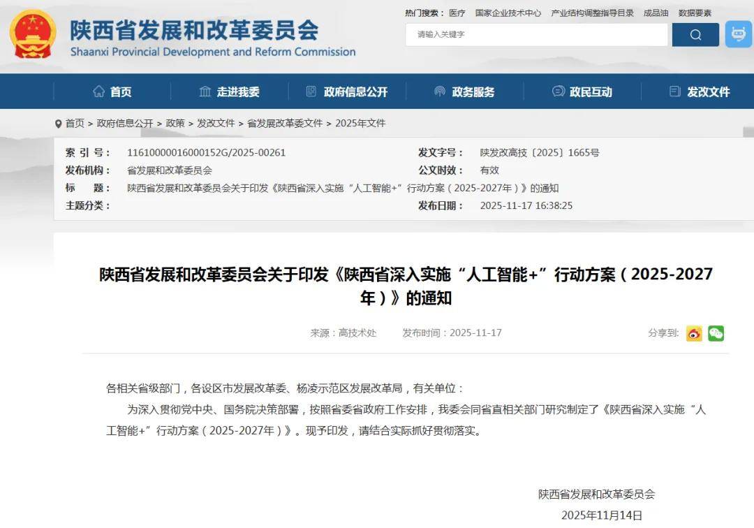 前瞻谋划、市场从导、需求牵引、场景示范、平安共享,充实阐扬我省科教资本富集、财产特色明显等劣势,环绕沉点范畴打制典型场景、实施示范项目、推广处理方案,加速扶植西安国度新一代人工智能立异成长试验区,以人工智能高程度使用鞭策财产成长、提拔平易近生福祉,为谱写陕西新篇争做西部示范供给无力支持。到2027年,制制、能源、文旅等沉点范畴智能化成长取得显著成效,新一代智能终端、智能体等普及率超70%,出现一批典型案例,智能经济成长驶入快车道,公共管理赋能成效显著提拔,打制具有全国影响力的人工智能立异成长堆积区。积极摸索人工智能驱动的新型科研范式,建立面向将来的高程度科研系统。加速结构人工智能陕西尝试室和相关范畴沉点尝试室,鞭策严沉科技根本设备等立异平台智能化升级。推进人工智能取保守学科深度融合,提拔多模态、高维度科学数据整合取处置能力,加速构成一批原始立异。加强人工智能取新材料、生物医药、航空航天、能源化工等沉点范畴手艺协同立异,推进立异加快落地。拓展人工智能手艺正在哲学社会科学范畴立异使用。(义务单元:省科技厅、省科学院、省社科院)2。“人工智能+”制制。以34条工业沉点财产链场景使用为牵引,积极建立“财产大脑+将来工场”新模式。环绕产物辅帮设想、工艺优化、智能排产、质量检测逃溯等沉点环节,推广一批可复制、可推广的智能制制典型案例。鞭策工业互联网平台融合多源数据,开辟垂曲行业模子和智能体使用,试点扶植一批工业智能体。建立支持智能体运转的根本软件平台,正在人工智能环节根本软件范畴培育一批专精特新企业。成立健全四级智能工场梯度培育系统,阐扬智能工场计谋立异联盟等行业组织感化,系统提拔制制企业智能化程度。(义务单元:省工业和消息化厅)3。“人工智能+”能源。加强智能化煤矿、聪慧油气井、智能电网、聪慧新能源场坐等扶植,鞭策人工智能取能源预测阐发、安排运转、毛病诊断、平安预警等深度融合,无力提拔煤炭绿色平安开辟、油气增储上产、电力系统矫捷靠得住调控、新能源开辟消纳等财产链环节环节智能化程度。指导能源企业结合人工智能企业,开展多源数据融合取智能决策使用,提拔产供储销全链条智能调控取风险防控能力。加速榆林能源立异示范区智能化扶植,鞭策煤炭智能开采、油气田智能运维、多能互补安排等场景率先落地。新建煤矿实现智能化设想扶植全笼盖。(义务单元:省成长委(省能源局))4。“人工智能+”农业。环绕全省8条农业沉点财产链,加速扶植“秦农大脑”。正在苹果、奶山羊等特色范畴,积极推进智能农机、农业机械人、农业无人机等设备研制和规模化使用,鼎力推广监测智能调控、水肥药精准办理、智能植保、疾病智能诊断、精准配方饲喂、从动采集清污等手艺配备使用,打制一批聪慧农(牧、渔)场。摸索使用“苏武”聪慧养羊等农业大模子,大幅提拔病虫害监测预警、畜禽养殖、农产物逃溯办理等能力。加速实施杨凌示范区种业立异工程,出力建立智能育种系统,打制国度旱区种业立异。(义务单元:省农业农村厅)5。“人工智能+”文旅。环绕全省8条则旅沉点财产链,建立智能、精准办事、立异体验的聪慧文旅新范式。扶植完美全省文旅财产运转监测取应急批示平台,强化客流及时监测、平安智能预警取应急安排能力。支撑企业整合文旅数据,开辟升级“博不雅”等大模子,打制多场景智能体,赋能精准营销、个性化办事等使用。环绕名胜奇迹及旧址,加强高精度数字化采集和文化融合,扶植数字孪生场馆、沉浸式体验新空间等,打制一批聪慧文旅标杆。建立涵盖影视、短视频、动漫等全品类文化创做的智能生态系统。拓展人工智能正在演艺表演、文创设想、会展筹谋、赛事运营、出书刊行等范畴深度使用。(义务单元:省文旅厅、省广电局、省文物局等)6。“人工智能+”交通。完美交通根本设备数字化收集、智能化管控系统,构成一体化分析交通运输消息平台。深化车协同手艺使用,提拔分析立体交通系统智能监测、灾祸智能预警和批示安排能力。成立公聪慧养护系统,实现病害智能识别和科学养护。完美秦岭地道群智能管控和长大桥梁智能监测收集,全面提拔地道、桥梁平安监管程度。推进智能物流枢纽扶植运转,帮力财产链供应链降本增效。稳步推进西咸新区全域智能驾驶贸易化试点,鞭策智能网联汽车“车云”一体化使用。(义务单元:省交通运输厅、省工业和消息化厅)7。“人工智能+”住建。环绕智能建制等沉点财产链,加强建建消息模子(BIM)集成设想、部品构件智能化出产施工、聪慧运维、营业协同办理等手艺融合成长,培育一批智能建制出产,打制一批细分使用场景,加速构成千亿级智能建制财产。鼎力推进建建机械人、3D打印建制、从动化施工设备等规模化使用,提拔施工效率和质量平安程度。推广多模态智能传感手艺,开展建建现患及时识别取精准预警。拓展人工智能正在平安、舒服、绿色、聪慧的“好房子”全生命周期使用,全链条提拔住房设想、建制、程度。(义务单元:省住建厅)8。“人工智能+”办事消费。激励扶植聪慧商圈、聪慧街区、沉浸式体验空间等智能消费根本设备,连系可穿戴智能设备、智妙手机等终端,加速构成陪同型、定制型