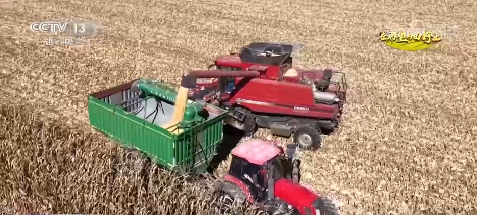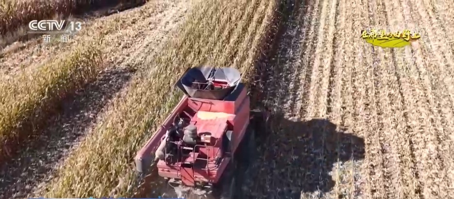 正在同江市乐业镇盛昌村,大型收割机轰鸣着穿越正在田间,尖锐的割台快速切割玉米秸秆,颠末脱粒、清选后,金黄的玉米粒间接落入机身粮仓。